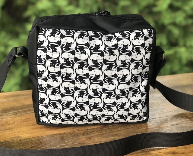 MaterialsOuter ShellBlack 600 denier stain resistant, water repellent, poly duckoverlaid on the front and back with a cotton printLiningBlack polyester taffeta, stain resistant, water repellent