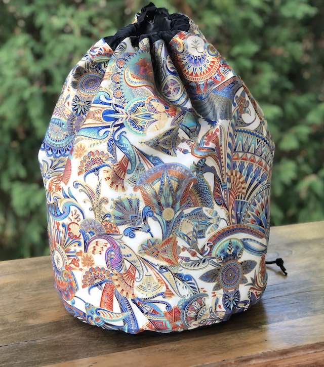 A large round drawstring bag
